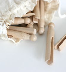 20 stk klesklyper laget i bjørk. Klesklypene ligger i en ubleket bomullspose.