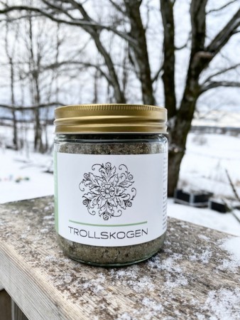 'Skogen på kroppen' er en dusjsåpe som lukter fantastisk! Dusjsåpen er kokt på einer fra gården til Vossabia, med eteriske oljer av furu, eukalyptus og sitrus.