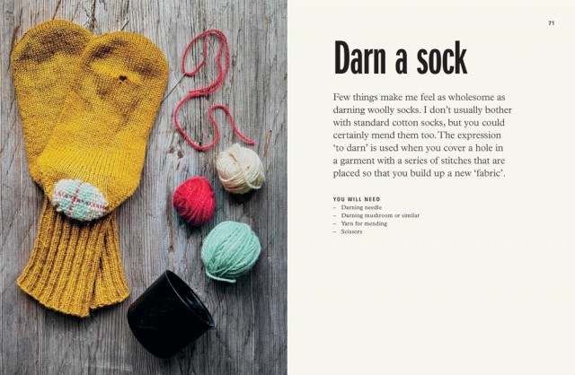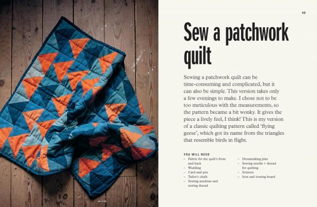 farge garn med bjørkeblader, skjære ut en knagglist, sy et lappeteppe og reparere jeans. Prosjektene krever sjelden store innkjøp eller uvanlig verktøy,