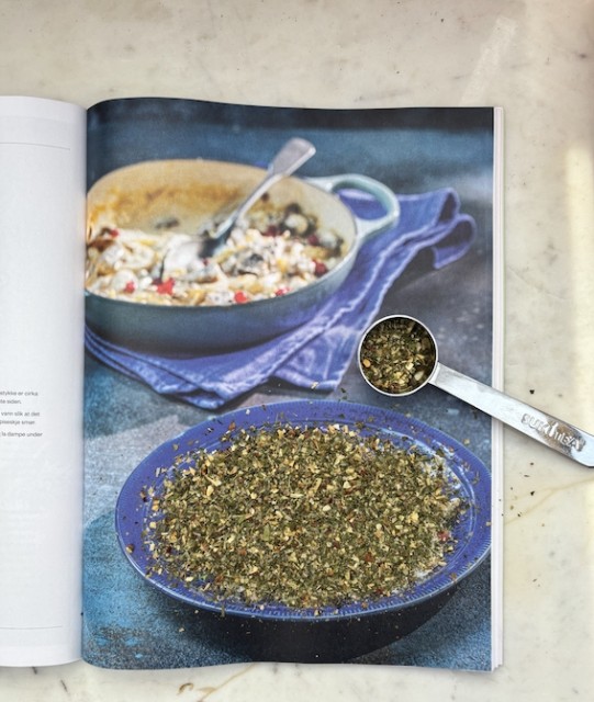 - Rehydrer 1 spiseskje urtesmørkrydder til 1 spiseskje varmt vann og la stå i ca. 5 minutter.