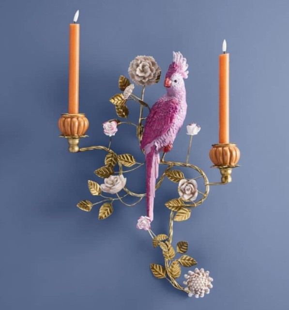 Vegglysestake med fugl, rosa/gull/orange Supergøy lysestake til å henge på veggen. PrisNOK1 999,00 inkl. mva. På lager Kjøp Ønskeliste Del dette Produktinfo Mål: 41 x 12 x 55 cmMateriale: resin og metal