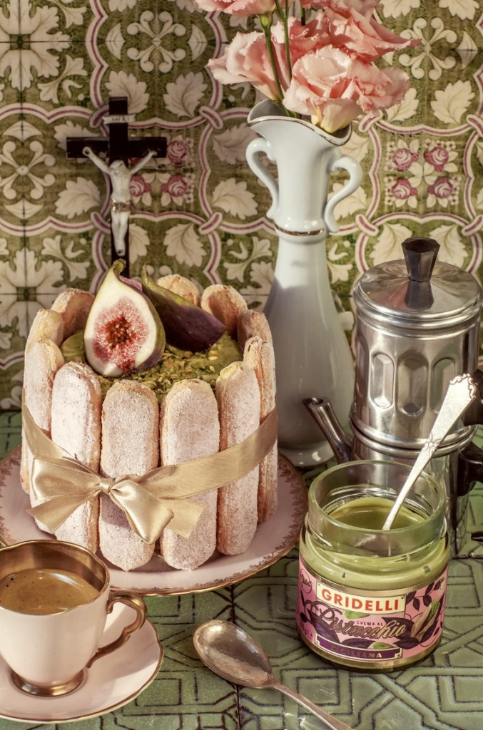Sukker, vegetabilske oljer og fettstoffer (solsikkeolje, kokosolje, kakaosmør), pistasjnøtter (25 %), skummetmelkpulver,