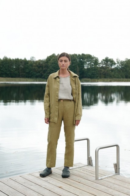 Vi har 20 fagfolk som jobber under ett tak, som vi verdsetter høyt fordi vi tror at permanente og positive relasjoner med et team bygger en sterkere merkevare. Hvert stykke er laget av 100% naturlig lin, hentet lokalt, fra Litauen. Et slitesterkt stoff som tilpasser seg huden og blir bedre for hver bruk. Vi bryr oss om å være en del av en positiv endring i klesindustrien ved å lage bærekraftige løsninger innenfor vår virksomhet. Vi reduserer stoffavfall ved å selge stoffrester, lage scrunchies, stoffprøver og har plagg som er laget av flere stoffstykker."