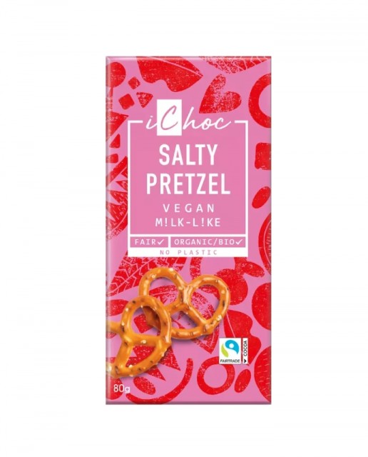 Lys sjokolade med salte pretzelbiter og søt mandelolje.