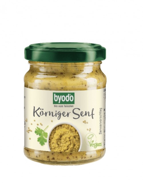 Byodo økologisk grov sennep er en smakfull og aromatisk sennep laget av knuste, økologiske sennepsfrø. Med sin rustikke tekstur og balanserte smak av mild syrlighet og lett krydret styrke, passer den utmerket til både tradisjonelle og moderne retter. Den grove konsistensen gir en spennende munnfølelse og tilfører ekstra karakter til maten, enten den brukes som pålegg, i marinader eller som en smakstilsetter i varme og kalde retter.
