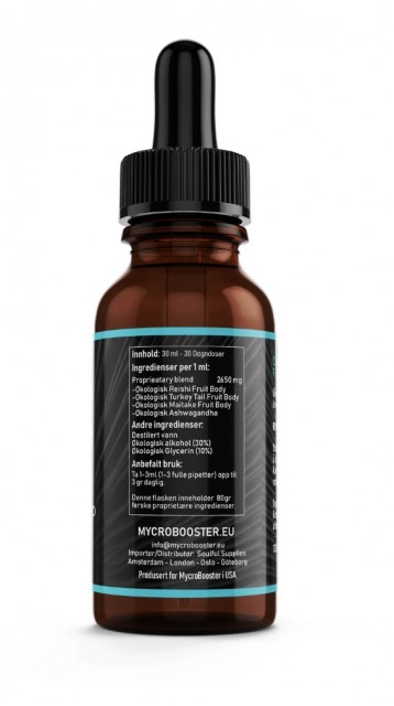 Mycro Booster - Relief er en unik formel som kombinerer kraftige adaptogene sopper og urter for å fremme indre ro, styrke immunsystemet, støtte et sunt tarmmikrobiom, og redusere betennelse. Denne blandingen er spesielt designet for å hjelpe deg med å bygge opp motstandskraft mot stress, samtidig som den støtter din generelle helse og vitalitet.